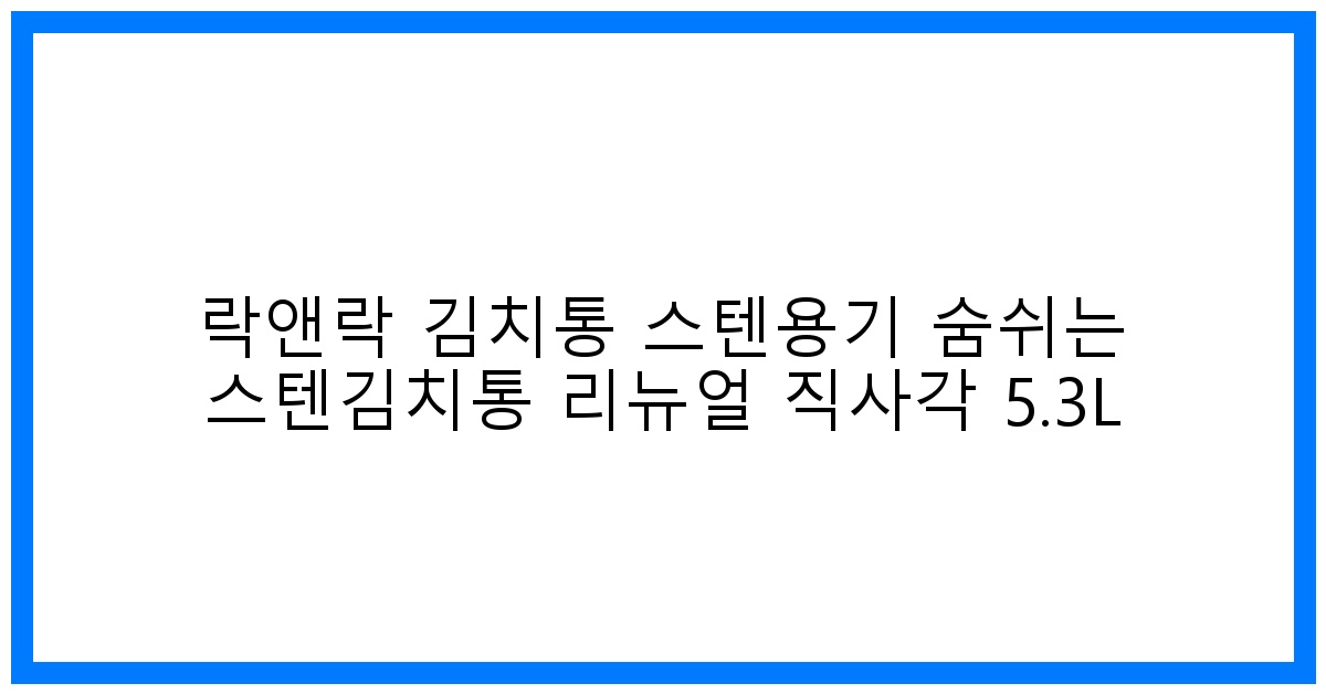 이번 포스팅에서는 락앤락 김치통 스텐용기 리뉴얼 직사각 5.3L에 대한 자세한 정보와 함께 김치를 더욱 맛있게 보관하는 방법, 그리고 김치통을 오래 사용할 수 있는 관리법까지 꼼꼼하게 알려드리겠습니다. 김치 보관에 대한 고민을 해결하고, 언제나 맛있는 김치를 즐길 수 있도록 도와드리겠습니다. 락앤락 김치통과 함께 김치 생활의 질을 한 단계 업그레이드해보세요. 이 글을 통해 여러분의 김치 보관 고민이 말끔히 해소되기를 바랍니다.
