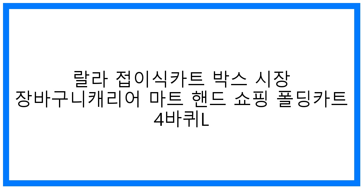 이 글에서는 랄라 접이식 카트의 다양한 장점과 활용법, 그리고 구매 시 고려해야 할 사항들을 자세히 알아보겠습니다. 랄라 접이식 카트가 왜 여러분의 쇼핑 생활에 혁명을 가져다줄 수 있는지, 지금부터 함께 살펴보시죠!