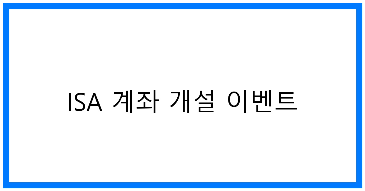 일반적으로 ISA 계좌 개설 이벤트는 특정 기간에 한정되어 있으므로, 각 금융 기관의 공지를 통해 확인해야 합니다.